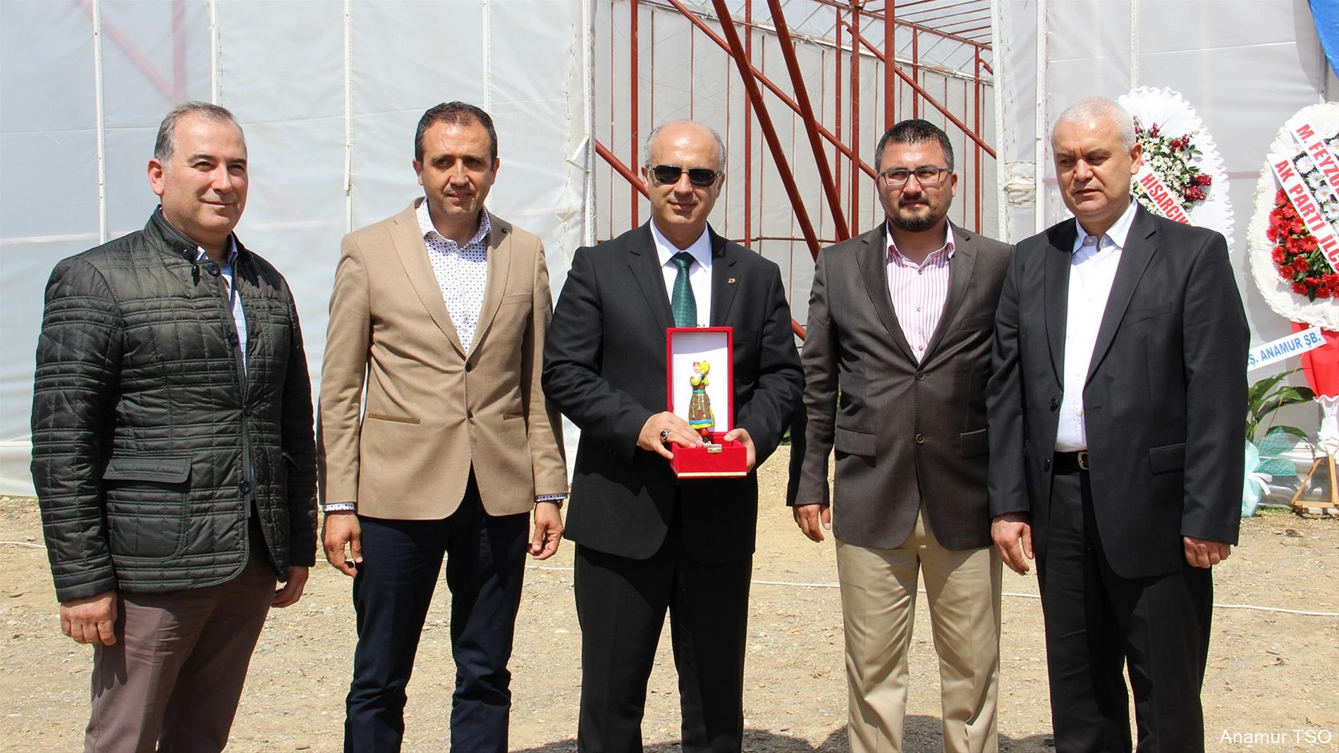 Odamız tarafından Anamur meslek yüksek Okuluna yapılan 2.5 dönümlük araştırma ve uygulama serasının devir teslim törenine Mersin Üniversitesi Rektörü Prof. Dr. Ahmet Çamsarı, Kaymakam Cengiz Cantürk, Anamur Meslek Yüksekokulu Müdürü Doç. Dr. Burçin Cevdet Çetinöz, Cumhuriyet Başsavcısı Vedat Temel, STK Temsilcileri ve Odamız üyelerinin katılımıyla gerçekleşti. Yönetim Kurulu Başkanımız Ferudun Torunoğlu konuşmasında; Oda tarafından yaptırılan bu seranın Anamur muzunun markalaşmasına büyük bir katkı sağlayacağını söyledi. Mersin Üniversitesi Rektörü Çamsarı ise, güçlü bir ülkenin güçlü bir eğitim ile olacağını söyledi. Bunun için pratik eğitimin yanında uygulamalı alanlarında olması gerektiğini anlatan Çamsarı, seranın da buna en güzel örneklerden birisi olduğunu kaydetti. Yüksekokulu Müdürü Çetinsöz, bugün burada bütün Türkiye'ye örnek olabilecek bir okul sanayi işbirliği sergilenmektedir. Mevcut açılacak olan 2.5 dönümlük muz serasında yüksekokulu öğretim görevlileri ve öğrenciler ilçe halkına yol gösterecek uygulamalar sağlamaya çalışacağız" dedi. Açılış öncesi Odamız tarafından davetlilere yemek verildi ve devir teslim töreni, plaketlerin verilmesi ve uygulama serasının gezilmesiyle son buldu.
